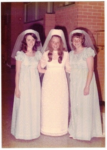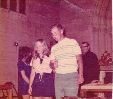 Scott and Betty married on Saturday, June 30, 1973. Betty's Mom designed her dress and the six bridesmaids' dresses along with the Jr. bridesmaid's dress. (You'll want to have one of them tell the story of the tardy groomsman, and the lector following the priest's specific instructions. BYOB.)