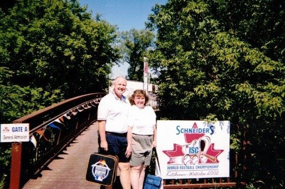 Scott continued officiating all three sports, but soon gave up basketball. He even officiated gymnastics with Betty for a few years. Through his writing, he met many influential sports officials in America and Canada. (Lots of stories to share – might not be enough beer in any refrigerator!)