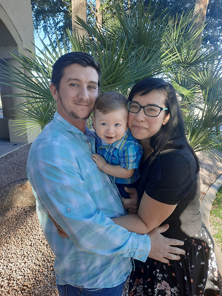 Betty and Baby Christopher decided after only an hour that 1,300 miles in a U-Haul truck was a bad idea – even with an inflatable donut seat cushion. Scott drove them to DFW, the nearest airport, and the two first-time flyers soon landed in Chicago for a quickly scheduled visit with Grandma Dorothy and Aunt Debbie. (Ask Betty about her first flying experience – a "full wine bottle" story.) Before long the still-new family reassembled in Macomb at WIU.